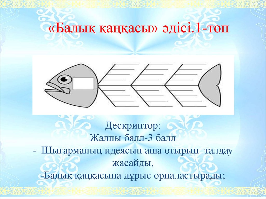 «Балық қаңқасы» әдісі.1-топДескриптор: