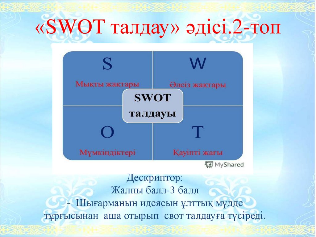 тұрғысынан аша отырып свот талдауға түсіреді.