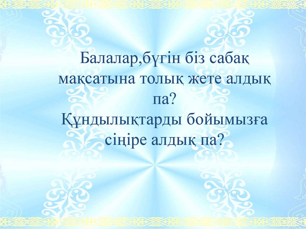 Балалар,бүгін біз сабақмақсатына толық жете алдық