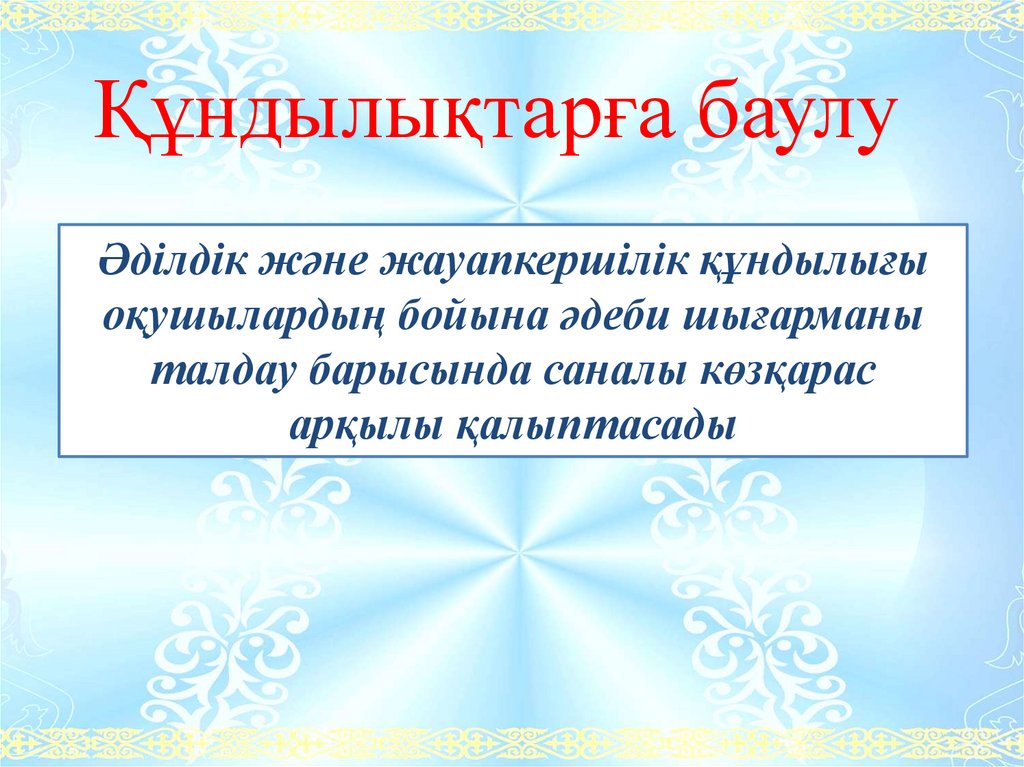 Құндылықтарға баулуӘділдік және жауапкершілік құндылығы