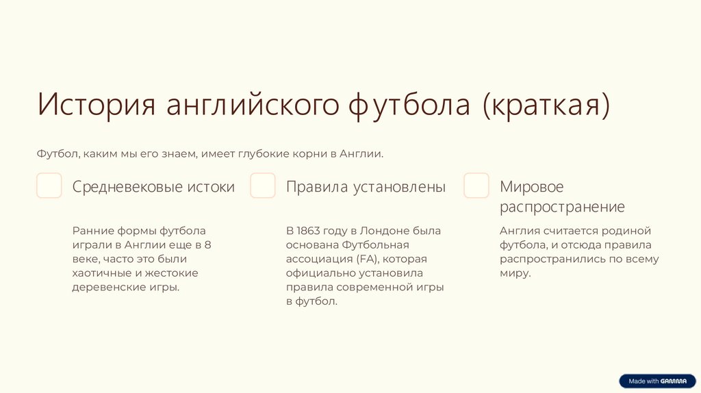 История английского ф утбола (краткая)Футбол, каким мы его знаем, имеет глубокие корни в Англии.