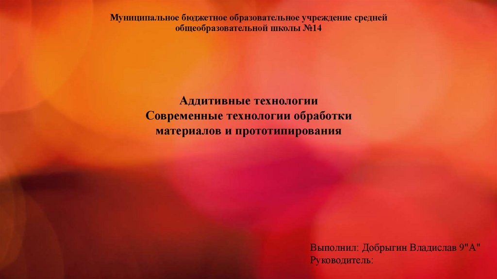 Аддитивные технологии Методы создания трёхмерных объектов путёмпослойного добавления материала