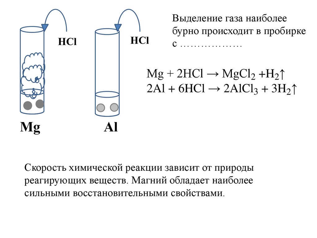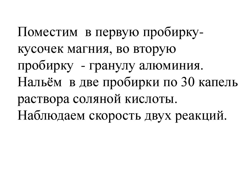 Поместим в первую пробиркукусочек магния, во вторуюпробирку - гранулу алюминия.