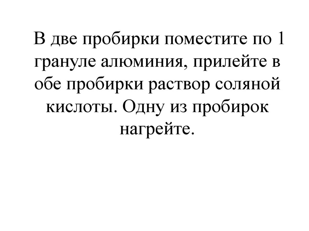 В две пробирки поместите по 1грануле алюминия, прилейте в