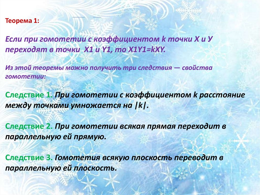 Теорема 1:Если при гомотетии с коэффициентом k точки X и У