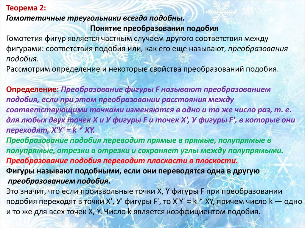 подобия переходят в точки X', У' фигуры F', то X'Y' = k * XY, причем число k — одно