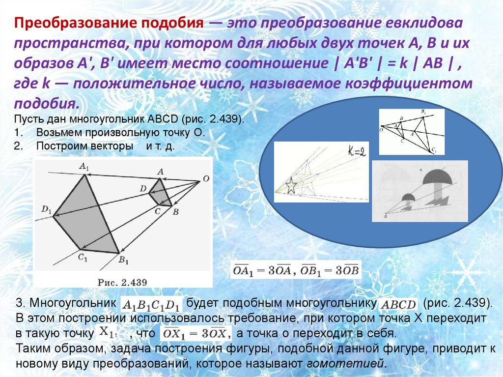 Преобразование подобия — это преобразование евклидовапространства, при котором для любых двух точек A, B и их
