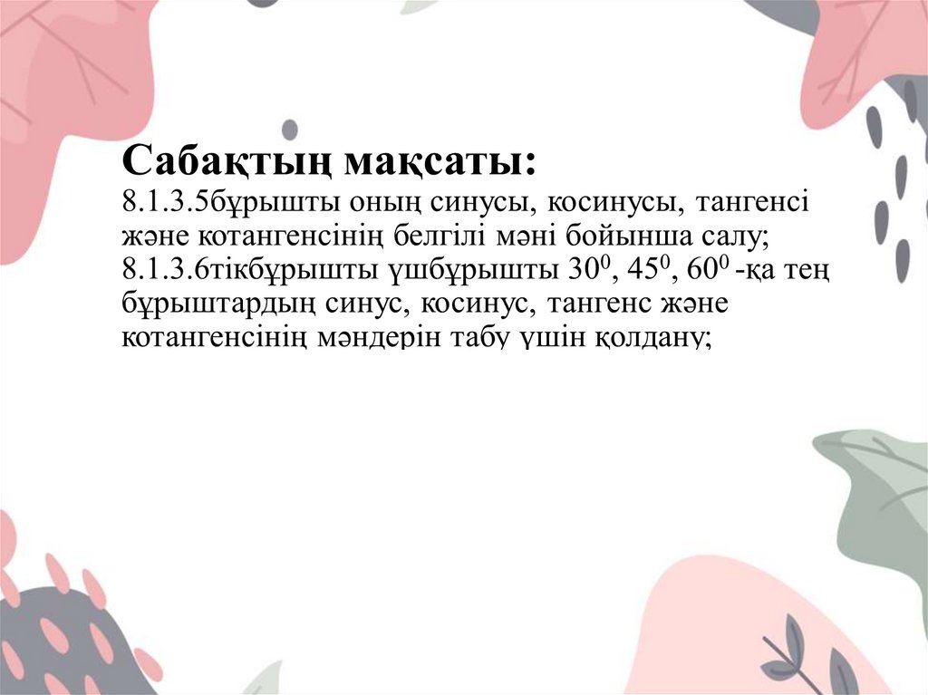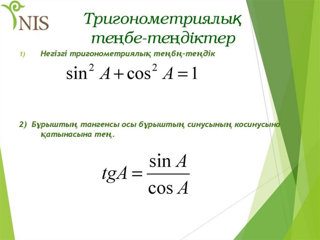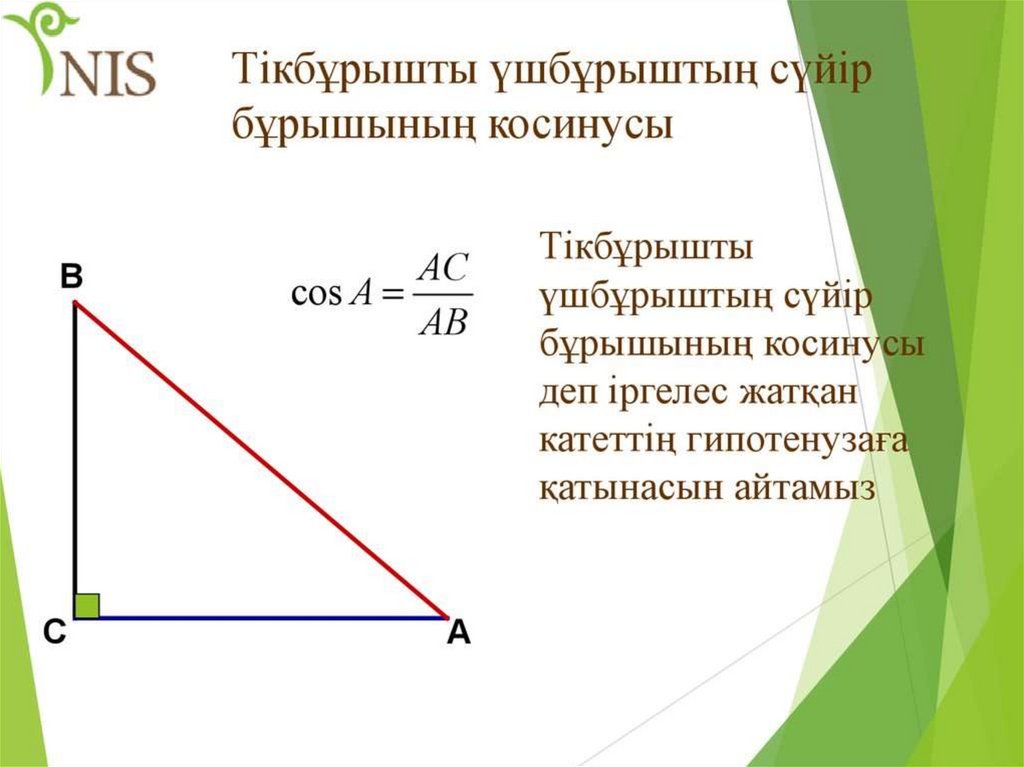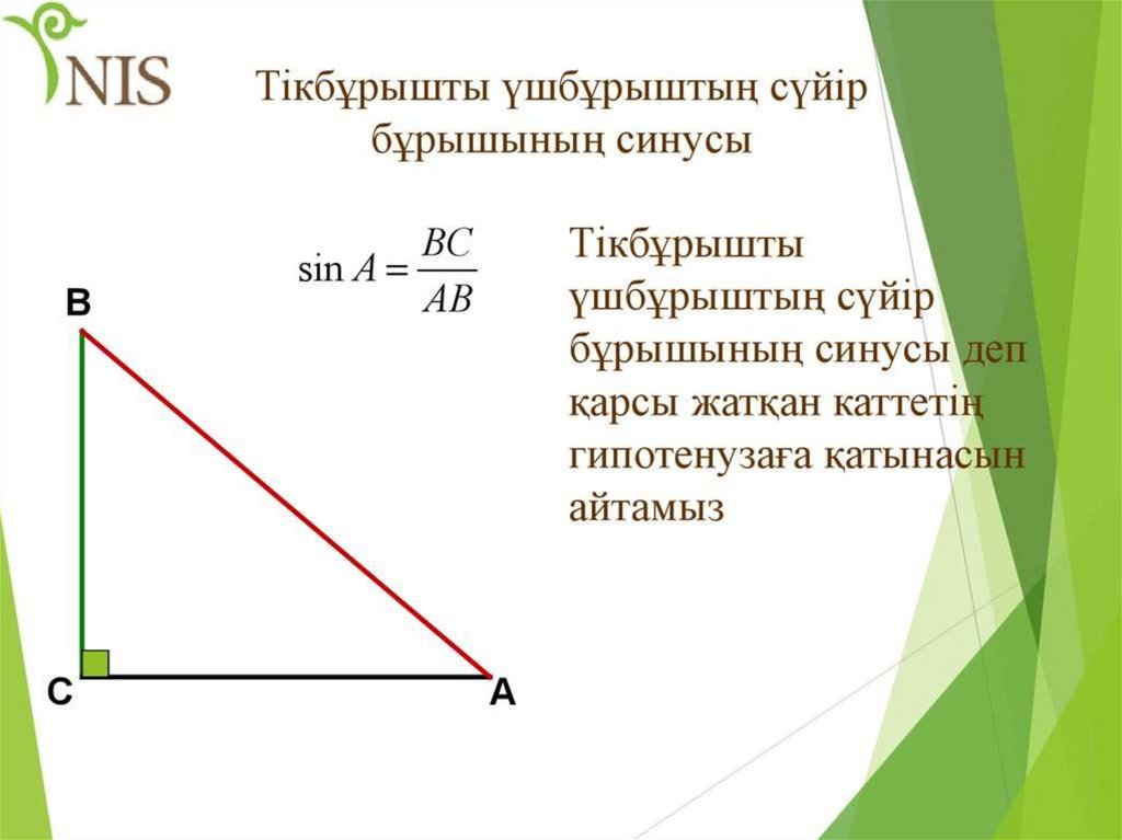 Сүйір бұрыштың синусы, тангенсі және котангенсі