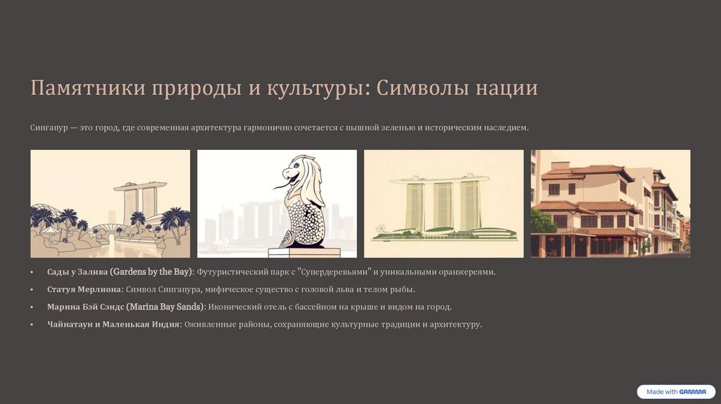 Памятники природы и культуры: Символы нацииСингапур — это город, где современная архитектура гармонично сочетается с пышной зеленью и историческим наследием.
