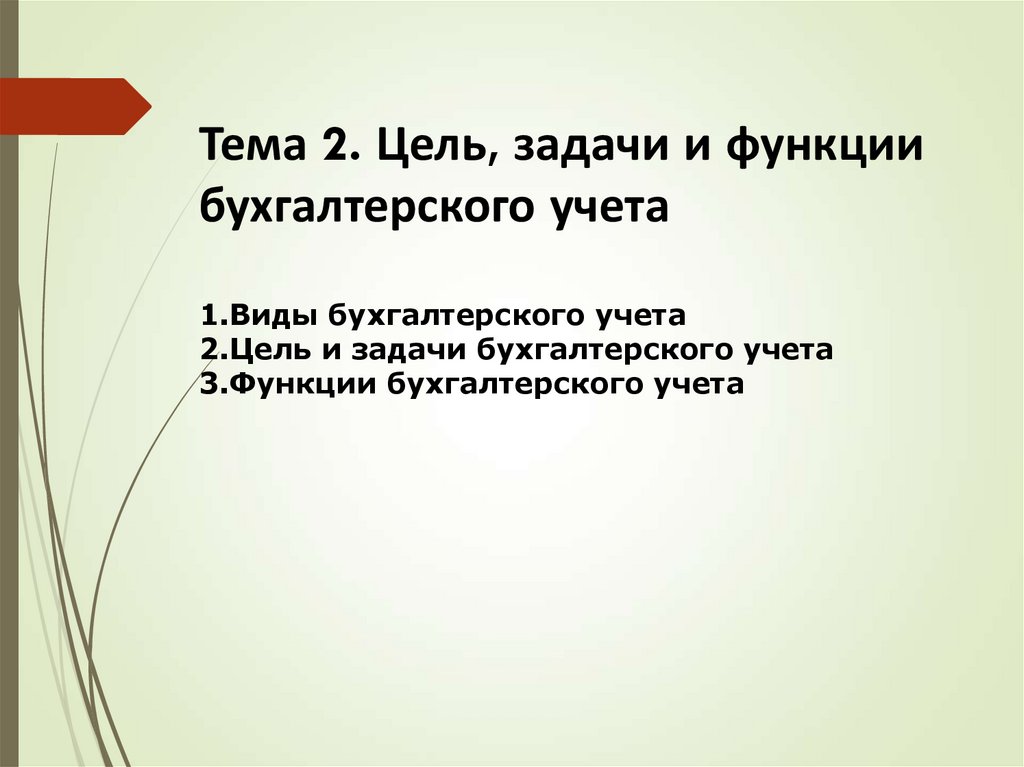 Тема 2 Цель, задачи и функции бухгалтерского учета