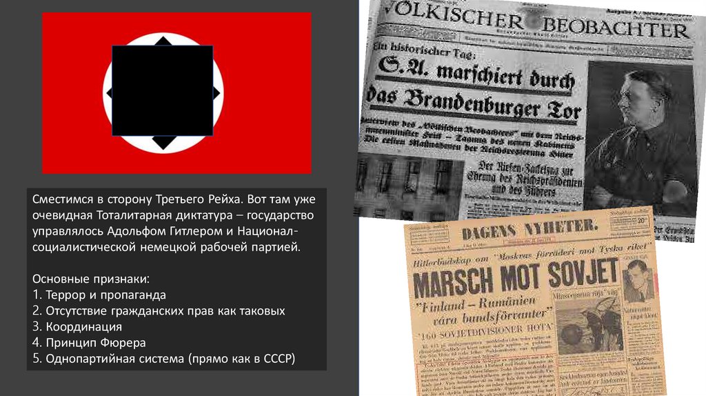 Сместимся в сторону Третьего Рейха. Вот там ужеочевидная Тоталитарная диктатура – государство
