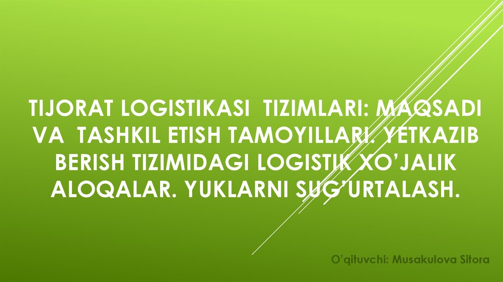 1. Tijorat logistikasi tizimlari: maqsadi va tashkil etish tamoyillari. Yetkazib berish tizimidagi logistik xo’jalik aloqalar.