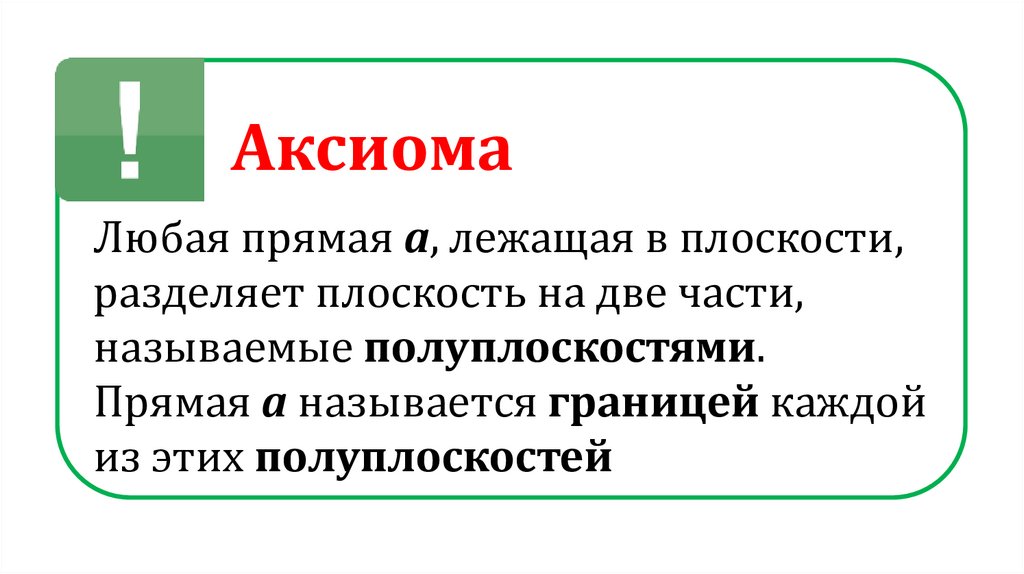 АксиомаЛюбая прямая a, лежащая в плоскости,