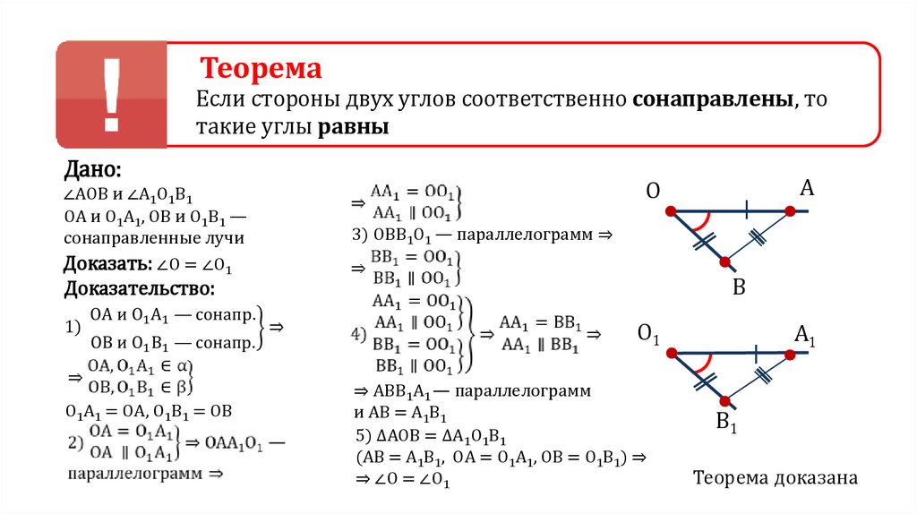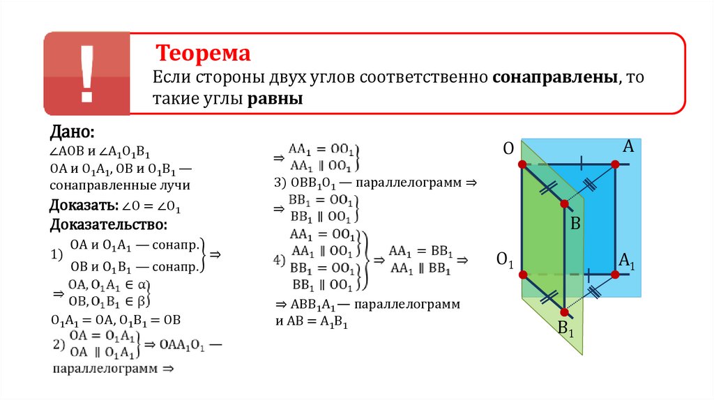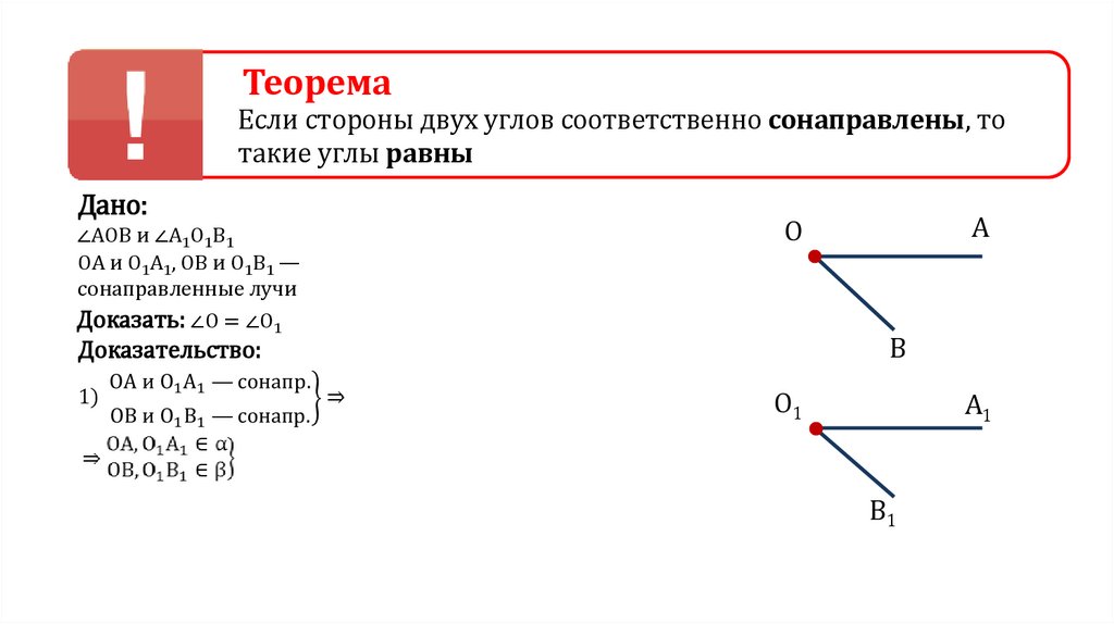 ТеоремаЕсли стороны двух углов соответственно сонаправлены, то