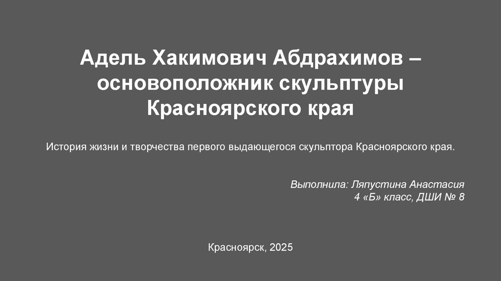 История жизни и творчества первого выдающегося скульптора Красноярского края.