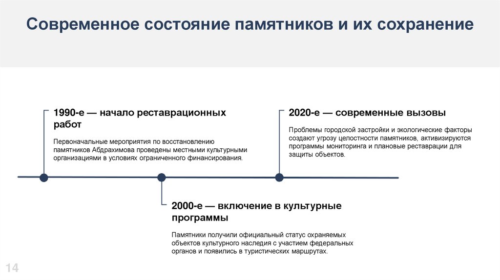 Современное состояние памятников и их сохранение1990-е — начало реставрационных
