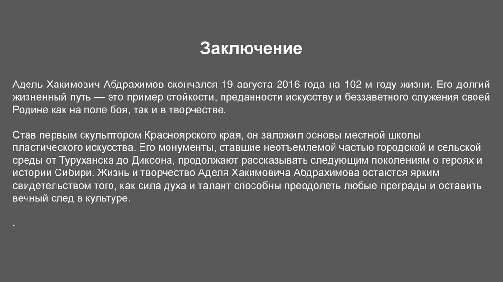 ЗаключениеАдель Хакимович Абдрахимов скончался 19 августа 2016 года на 102-м году жизни. Его долгий