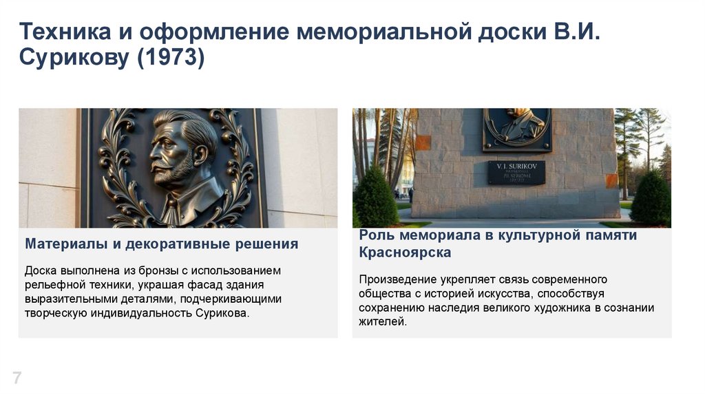Техника и оформление мемориальной доски В.И.Сурикову (1973)