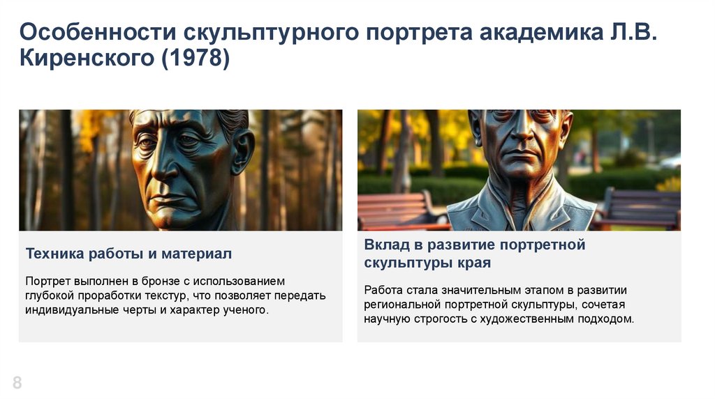 Особенности скульптурного портрета академика Л.В.Киренского (1978)