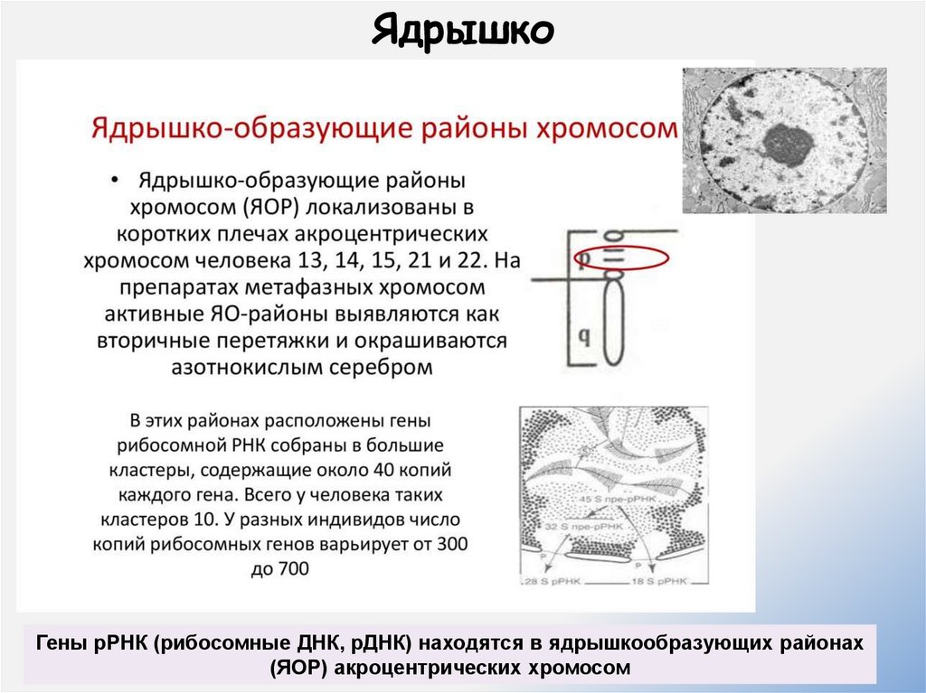 ЯдрышкоГены рРНК (рибосомные ДНК, рДНК) находятся в ядрышкообразующих районах