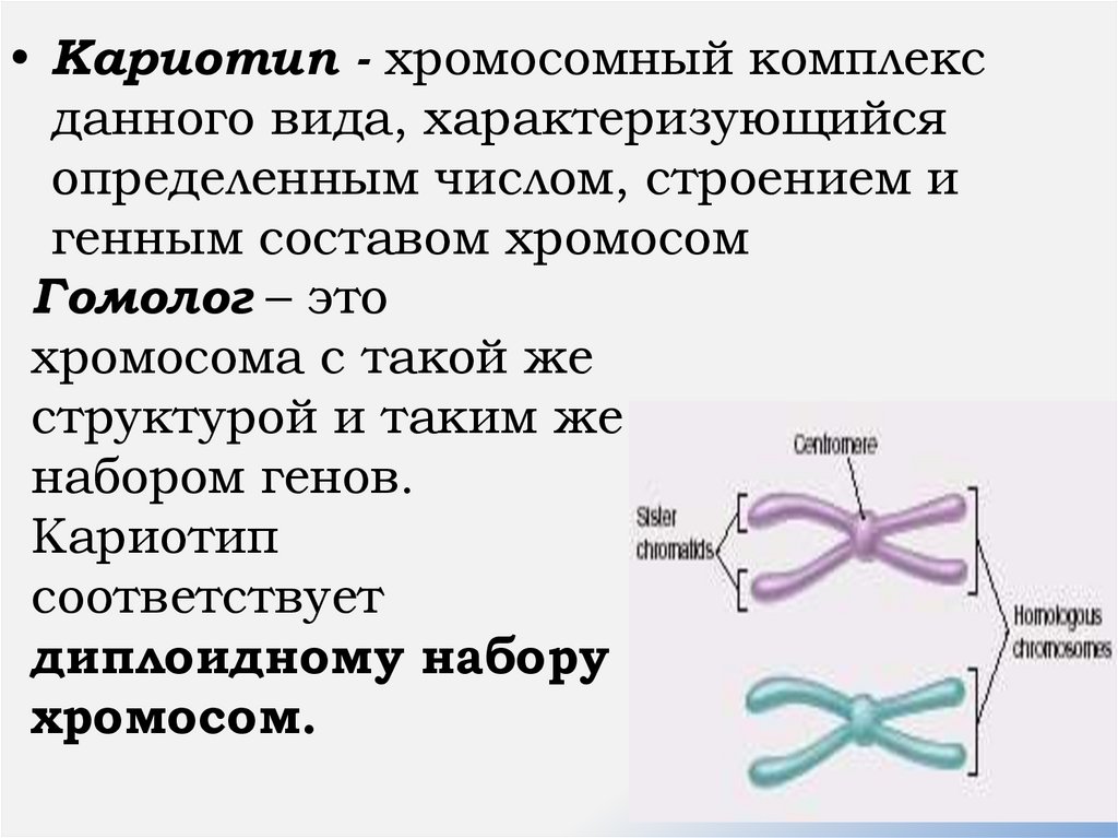 • Кариотип - хромосомный комплексданного вида, характеризующийся