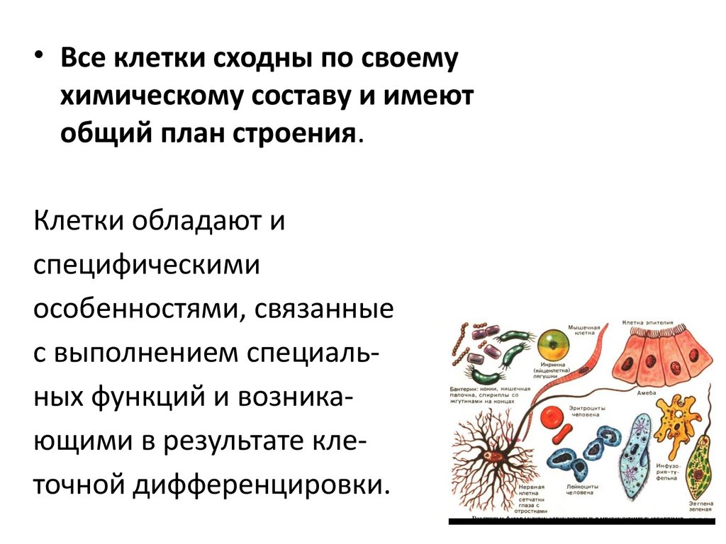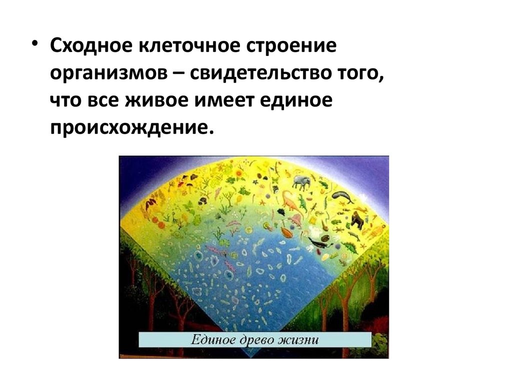 • Сходное клеточное строениеорганизмов – свидетельство того,