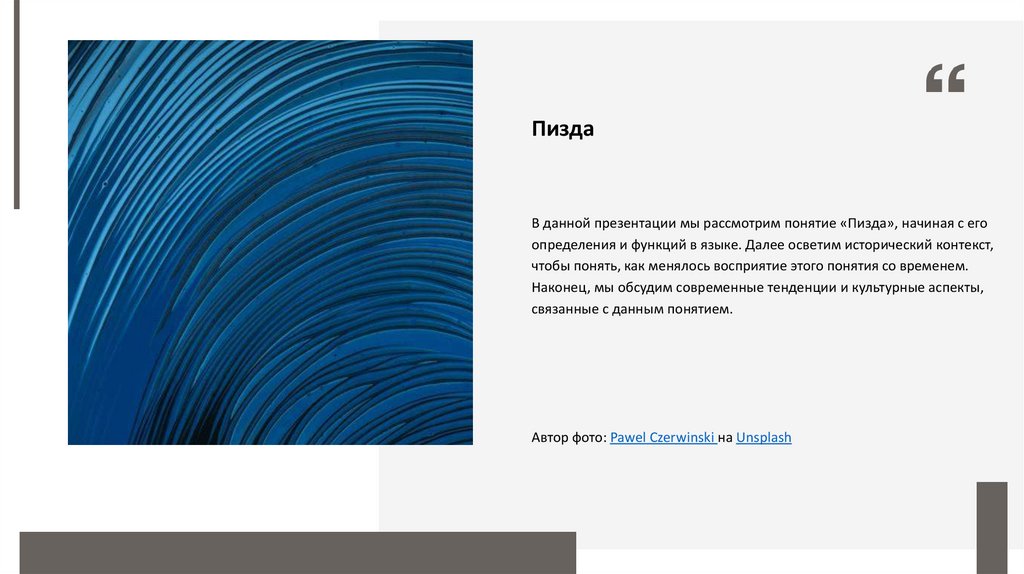 ПиздаВ данной презентации мы рассмотрим понятие «Пизда», начиная с его