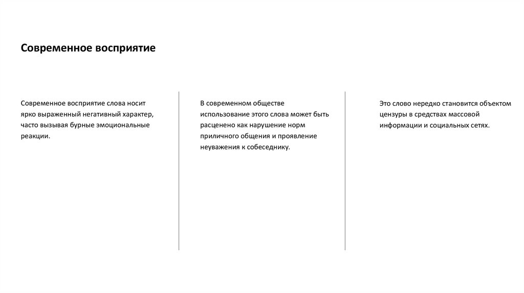 Современное восприятиеСовременное восприятие слова носит