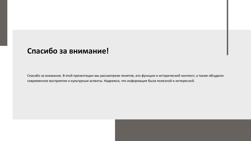 Спасибо за внимание!Спасибо за внимание. В этой презентации мы рассмотрели понятие, его функции и исторический контекст, а также обсудили