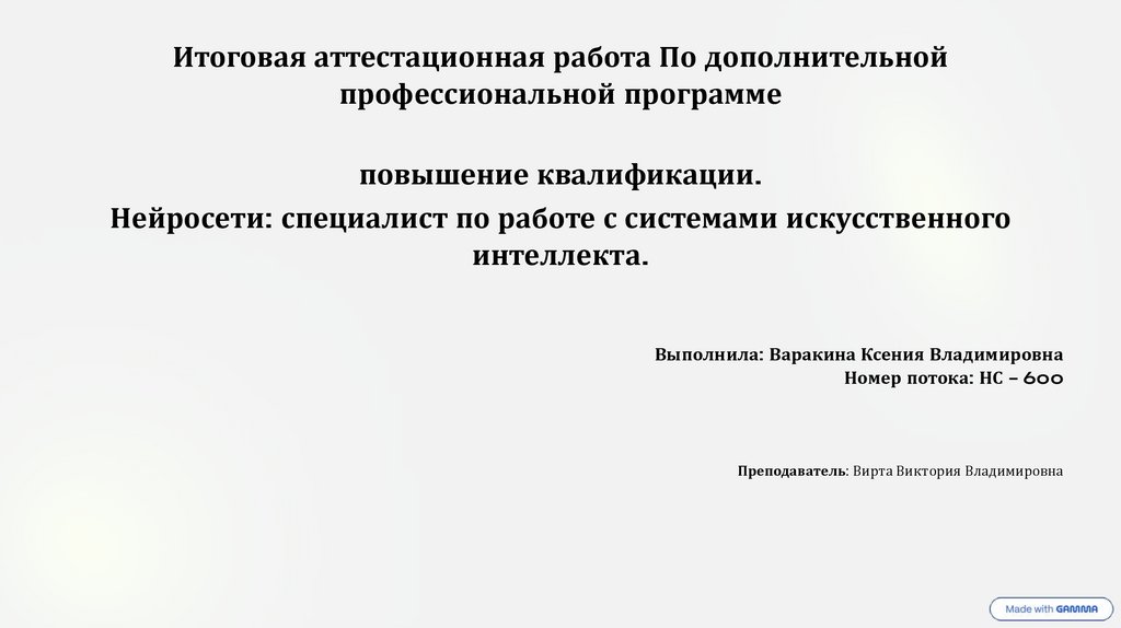 Итоговая аттестационная работа По дополнительнойпрофессиональной программе