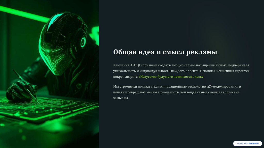 Общая идея и смысл рекламыКампания ART 3D призвана создать эмоционально насыщенный опыт, подчеркивая