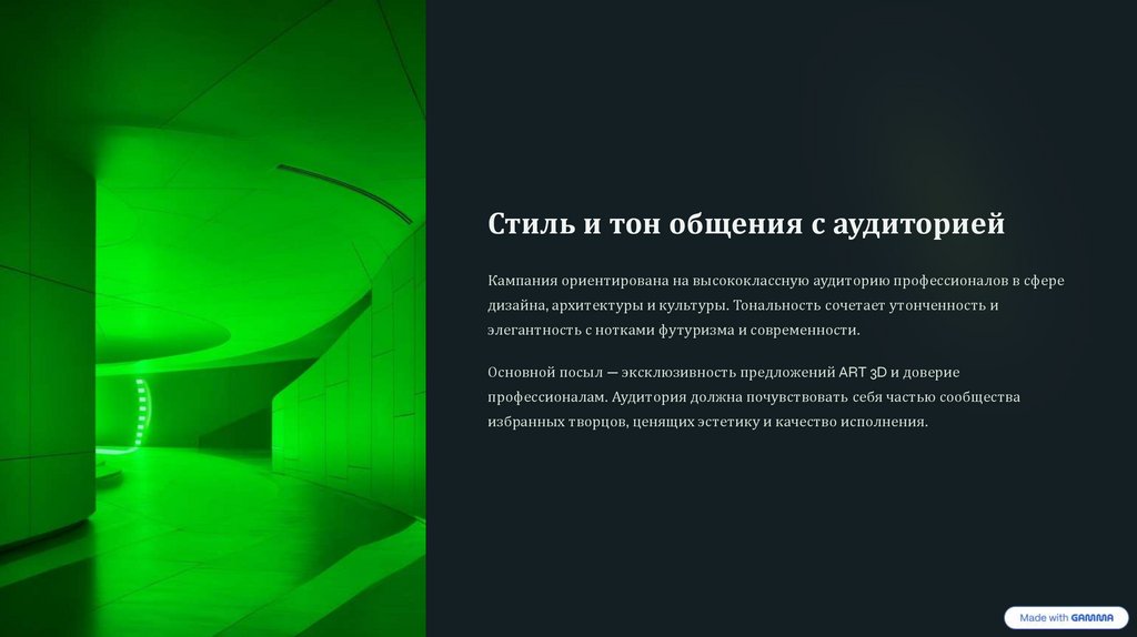 Стиль и тон общения с аудиториейКампания ориентирована на высококлассную аудиторию профессионалов в сфере