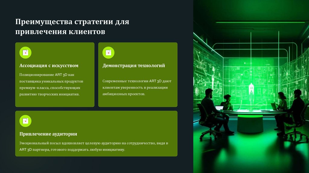 Основной посыл — эксклюзивность предложений ART 3D и доверие