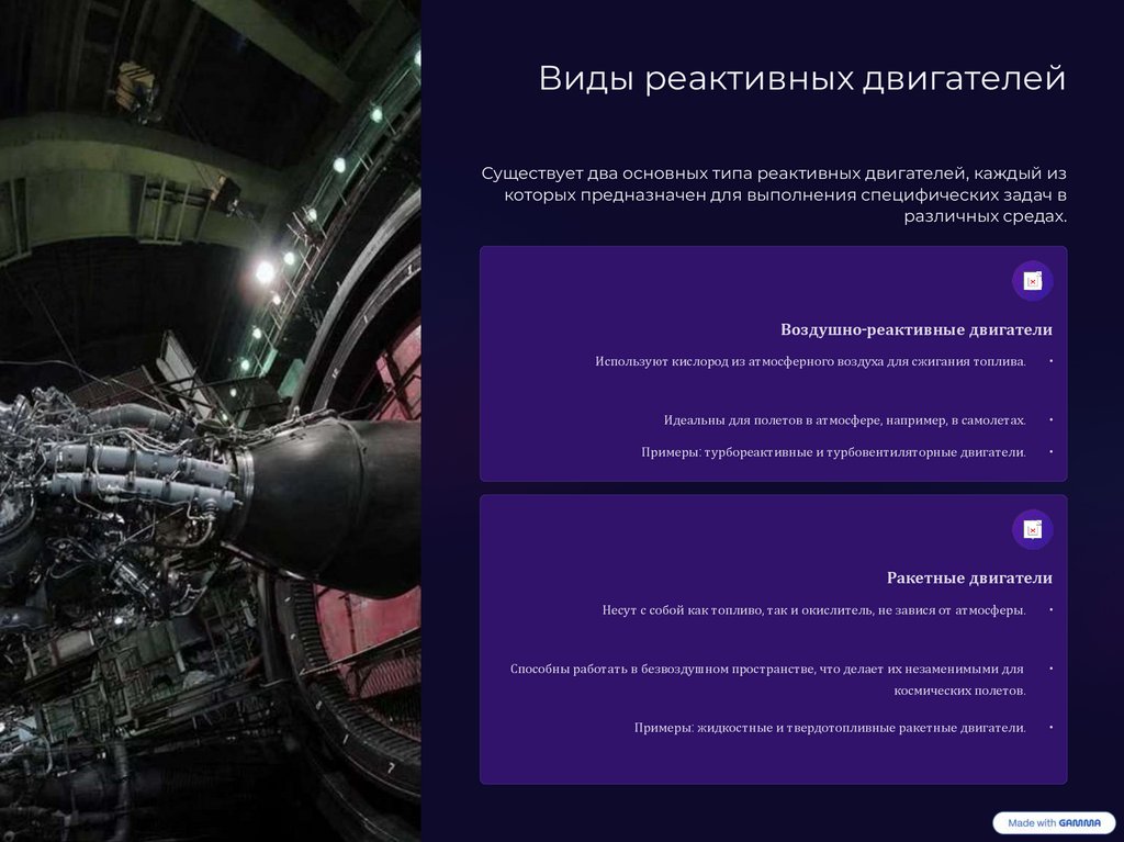 Виды реактивных двигателейСуществует два основных типа реактивных двигателей, каждый из