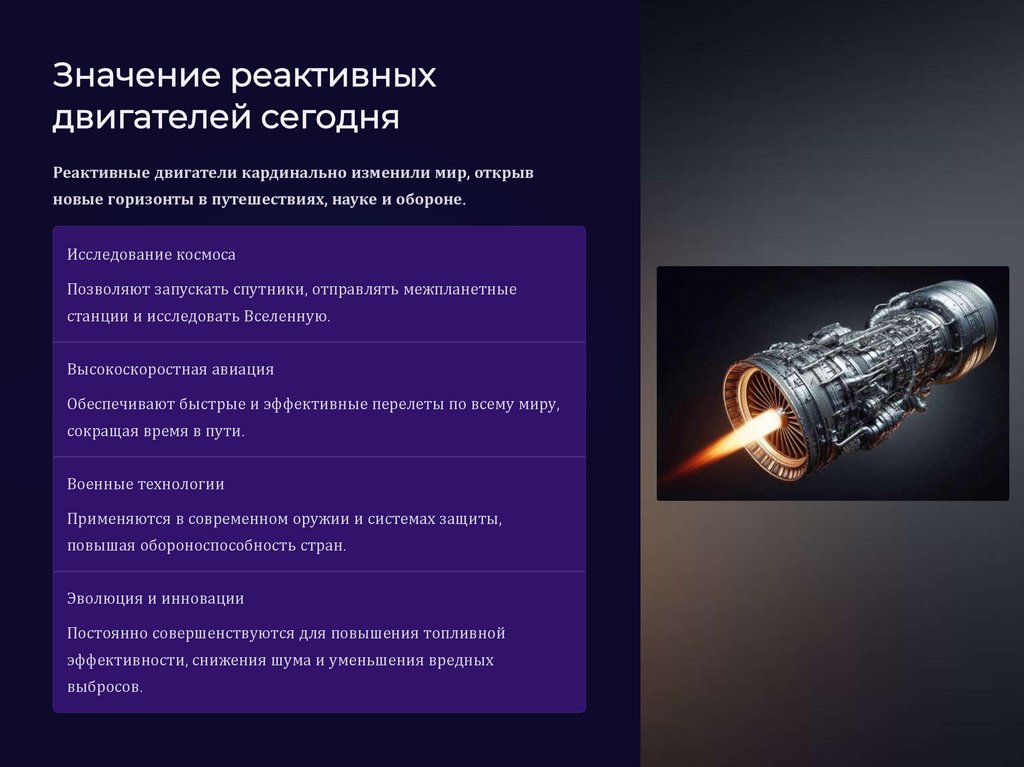 Значение реактивныхдвигателей сегодня
