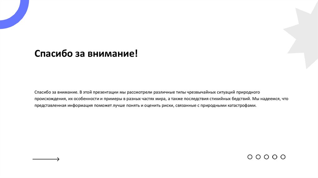 Спасибо за внимание!Спасибо за внимание. В этой презентации мы рассмотрели различные типы чрезвычайных ситуаций природного
