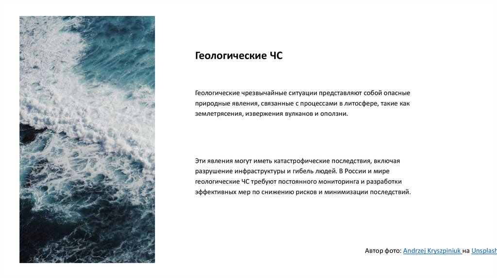 Геологические ЧСГеологические чрезвычайные ситуации представляют собой опасные