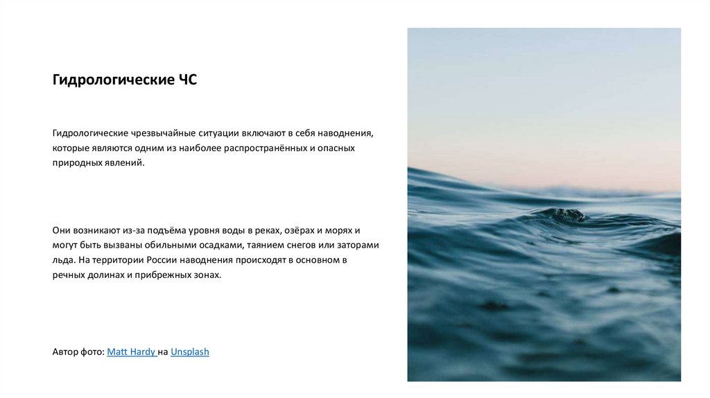 Гидрологические ЧСГидрологические чрезвычайные ситуации включают в себя наводнения,