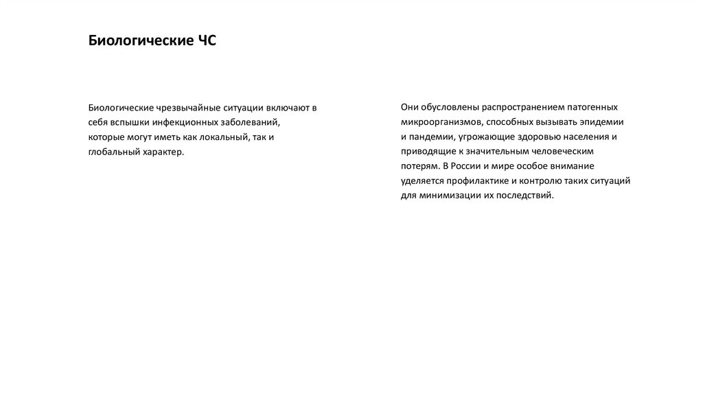 Биологические ЧСБиологические чрезвычайные ситуации включают в