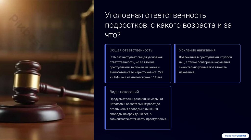 Статья 151 УК РФ предусматривает строгие меры за вовлечение подростков в