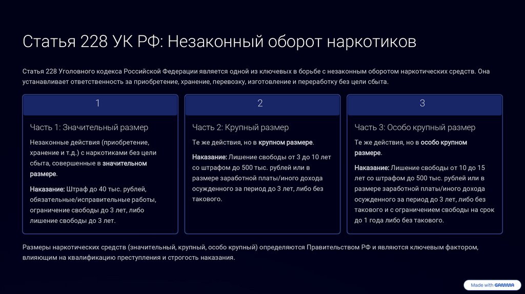 Статья 228 УК РФ: Незаконный оборот наркотиковСтатья 228 Уголовного кодекса Российской Федерации является одной из ключевых в борьбе с незаконным оборотом наркотических средств. Она