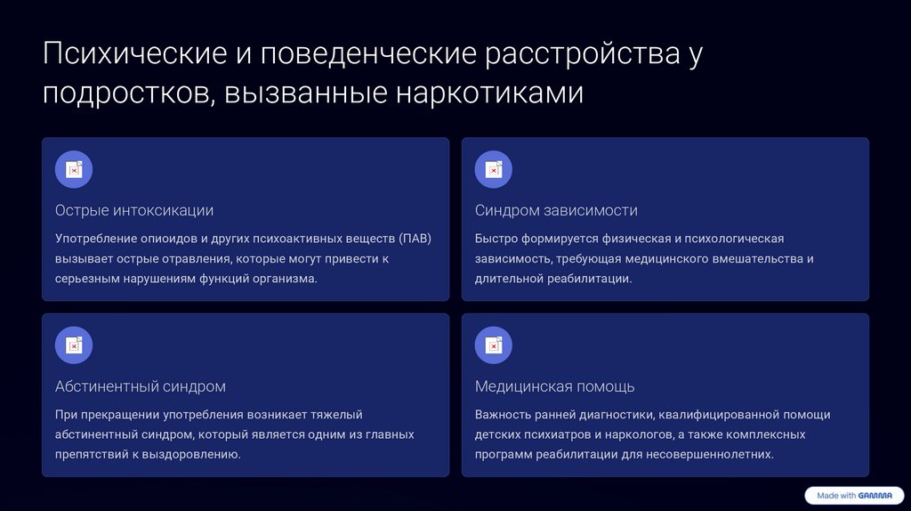Психические и поведенческие расстройства уподростков, вызванные наркотиками