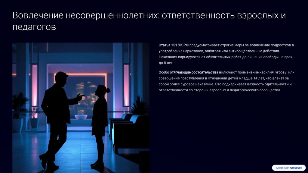 Статья 151 УК РФ предусматривает строгие меры за вовлечение подростков в