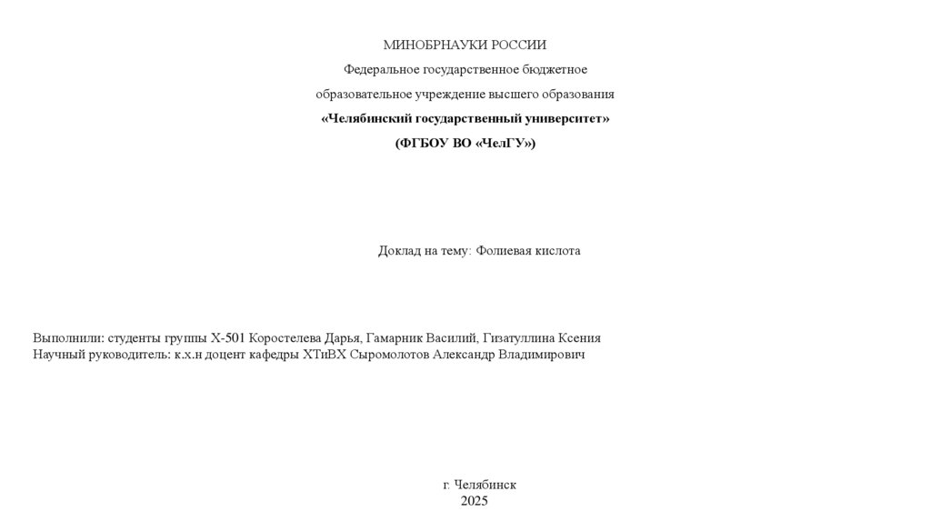 1. МИНОБРНАУКИ РОССИИ Федеральное государственное бюджетное образовательное учреждение высшего образования «Челябинский