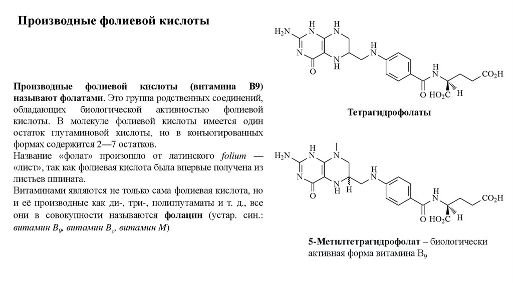 производные — тетрагидрофолаты. Именно в этой форме