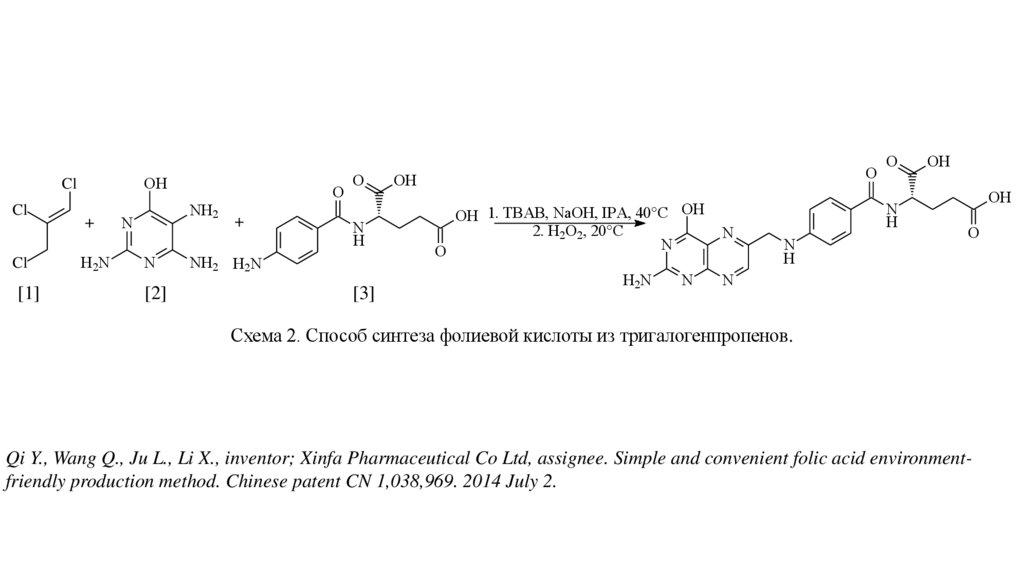 Qi Y., Wang Q., Ju L., Li X., inventor; Xinfa Pharmaceutical Co Ltd, assignee. Simple and convenient folic acid environmentfriendly production method. Chinese patent CN 1,038,969. 2014 July 2.