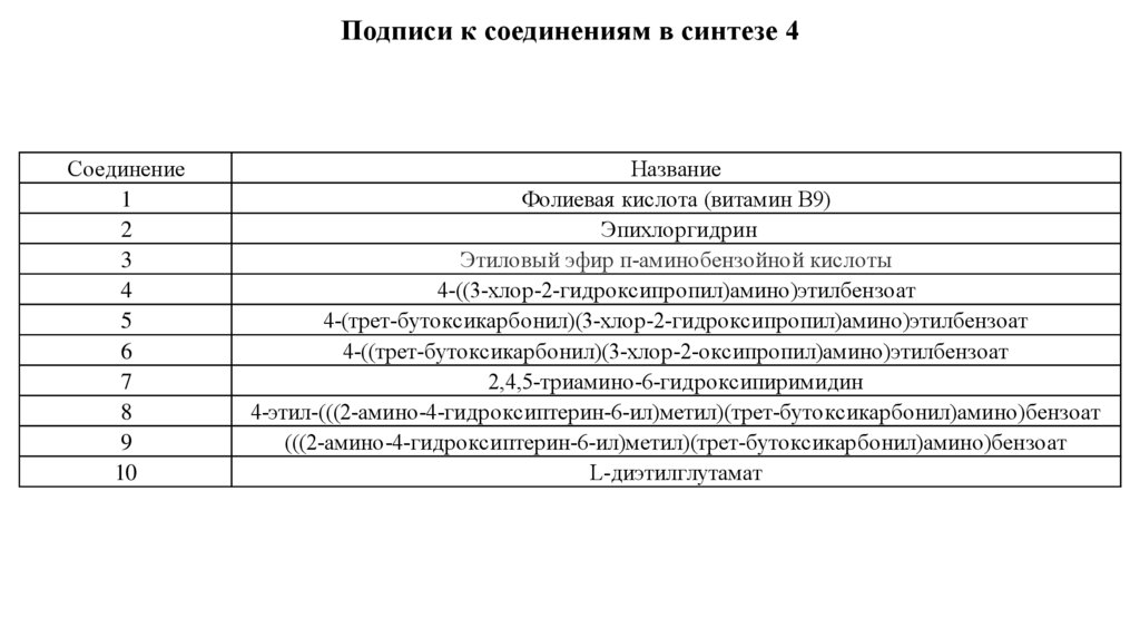 Подписи к соединениям в синтезе 4Соединение
