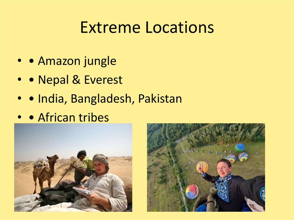 • • Travels to dangerous and exotic regions