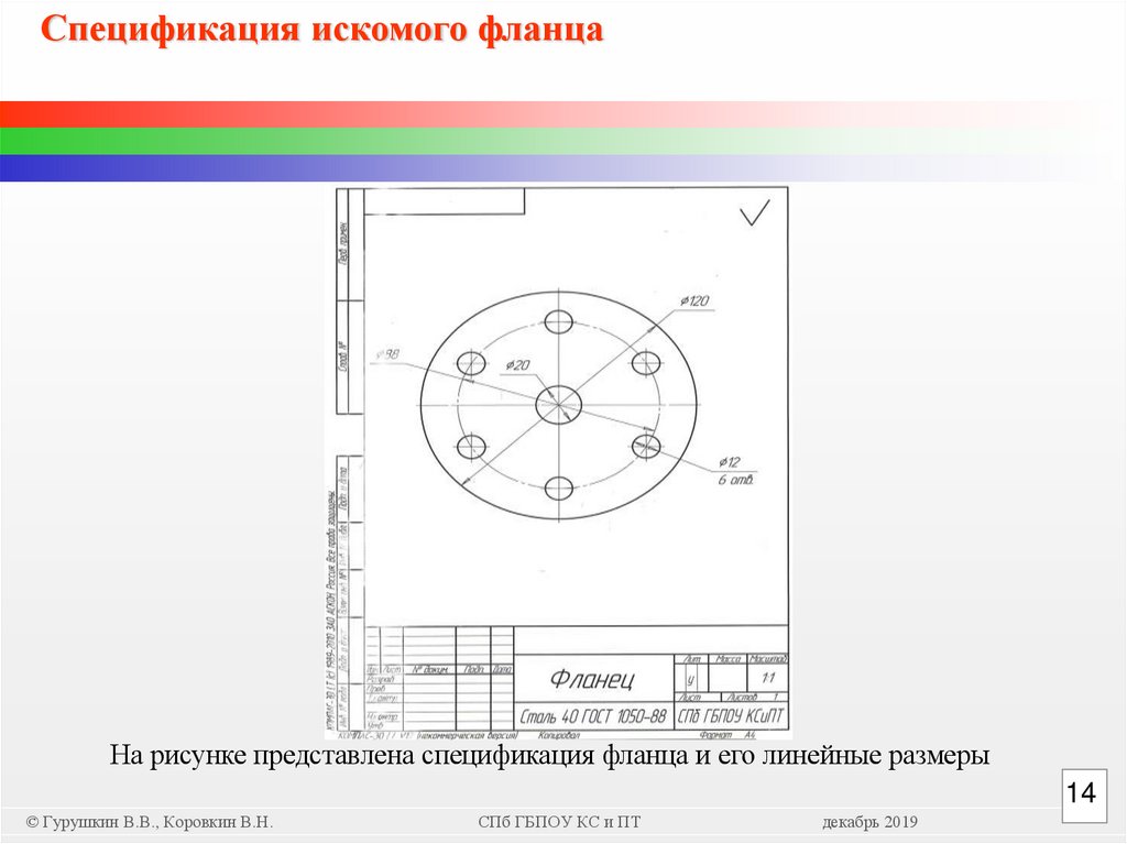 Спецификация искомого фланцаНа рисунке представлена спецификация фланца и его линейные размеры