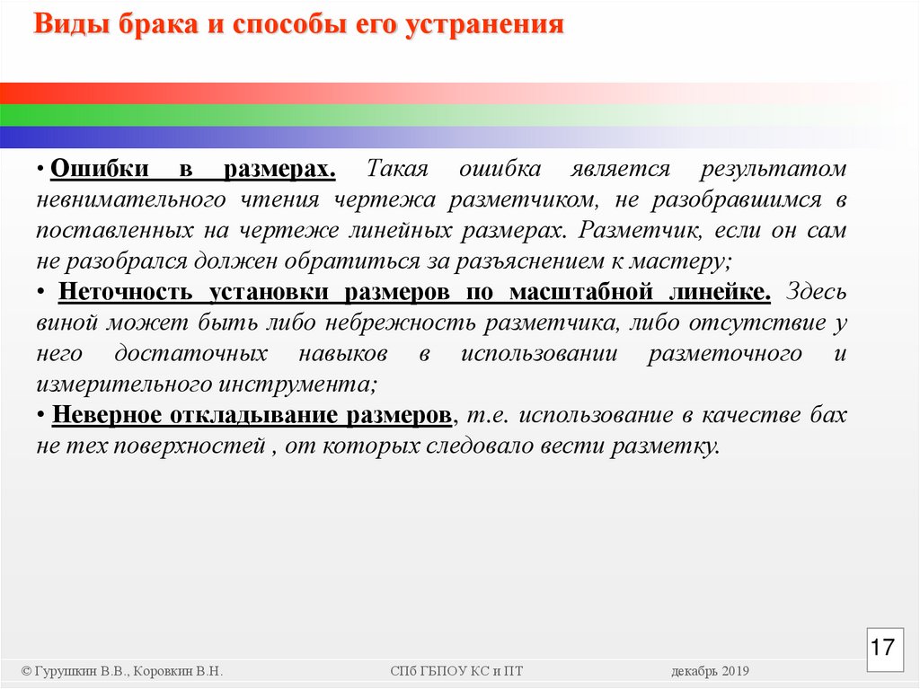 невнимательного чтения чертежа разметчиком, не разобравшимся в